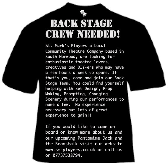 Come and join us – it’s fun! If you want to be part of the show but prefer to be out the spotlight, we would very much welcome some helping hands with the following: